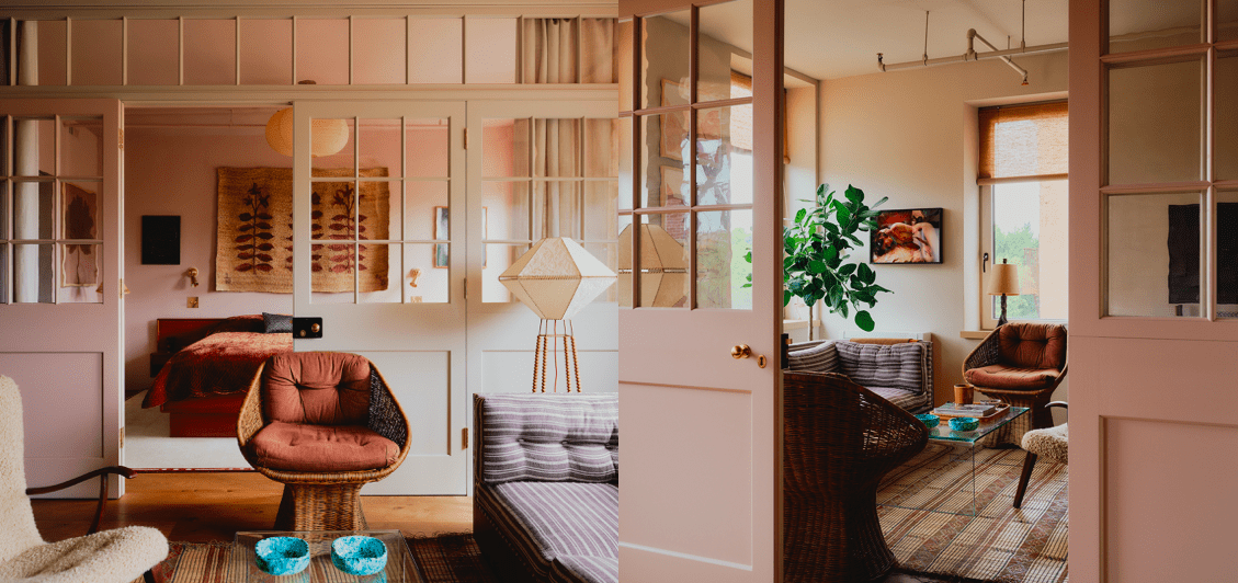 In the materiality and detailing a dialogue emerges —the iron ‘Weymouth’ handles echo the industrial locality while the refined colour palette of ‘Kipper’ and ‘Mash’ softens the architectural vastness. The primary experience is of the quality of light that envelops and travels from room to room, shared throughout and becoming one.